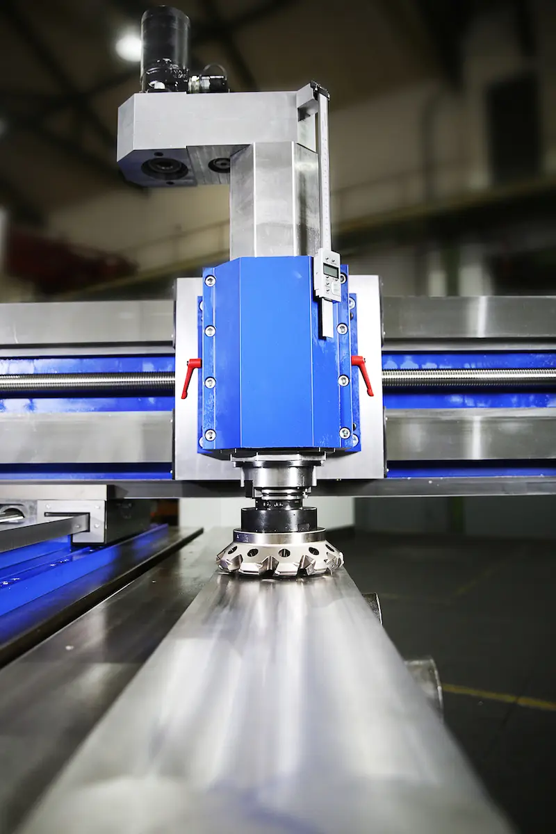 - Hochleistungs-Fräseinheit bestehend aus einer oktogonalen Pinole mit 4 Führungsflächen, einer integrierten spielfreien Frässpindel mit Hochpräzisionslagern und einem Getriebe mit gehärteten und geschliffenen Zahnrädern zur Übertragung von hohen Leistungen